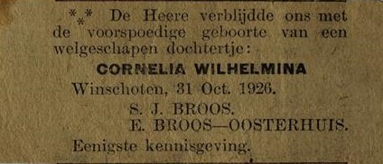 Cornelia Wilhelmina Broos, Winschoten 31.10.1926 - Hengelo 22.9.1980     index