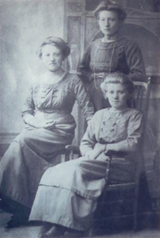 De drie gezusters Wieringa: staand Grietje, links Rika en vooraan Jantje.