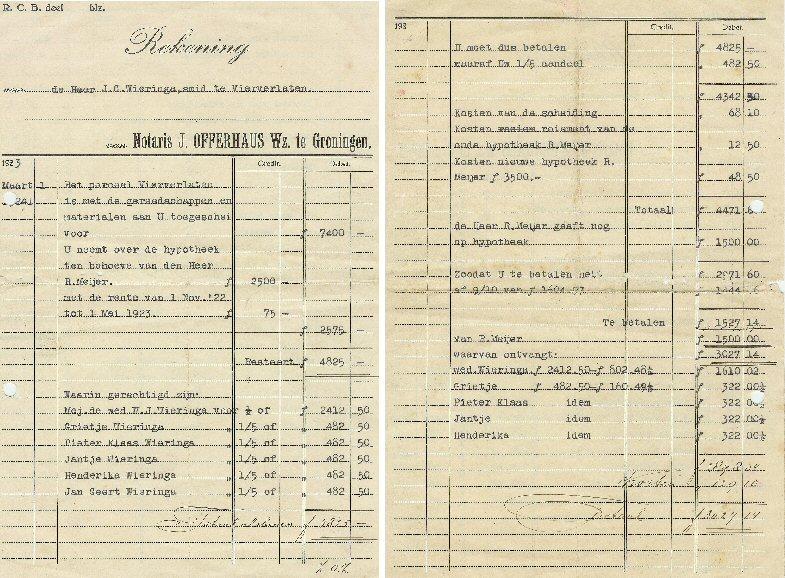 Wiert Jans Wieringa overlijdt in 1922. Notaris Offerhaus in Groningen stuurt de rekening van de boedelscheiding.
