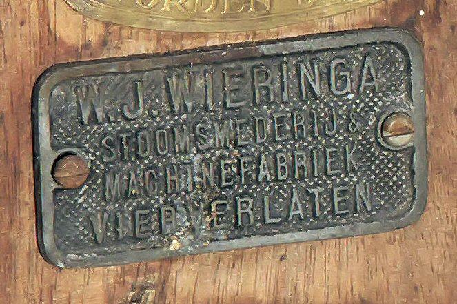 "Wiert Jan Wieringa maakte onder andere stalen roeden voor koren- en watermolens. Die stonden kwalitatief hoog aangeschreven bij de Molenafdeling van de Rijksdienst voor de Monumentenzorg. In de vitrine waarin speciale gereedschappen van molenbouwers en molenaars werden tentoongesteld lag zelfs een gegoten bronzen plaatje met zijn naam en woonplaats." (W.J. Berghuis). Zulke roeplaatjes worden blijkbaar ook bewaard in de molen d'Admiraal in Amsterdam, waaronder die van W.J. Wieringa te Vierverlaten.