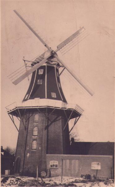 Ook voor deze watermolen in de Koningslaagte (bij Groningen) maakte hij ooit de stalen roeden voor de wieken.