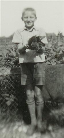 Tinus met zijn duifje in de tuin op Vierverlaten