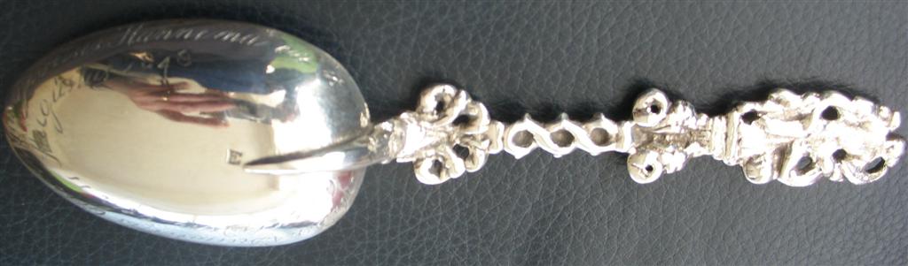 geboortelepel van Hantje Fedses Hannema waarin gegraveerd staat: