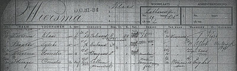 Gezinskaart Klaas Wiersma (1866), Amsterdam