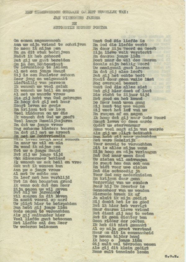 15.7.1820 feestrede tgv het huwelijk van Jan Wybrens Jansma en Autgertie Menses Postma