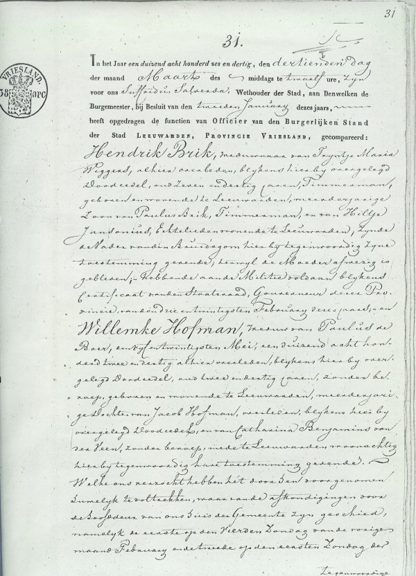 Willemke Hofman, Leeuwarden 23.6.1803 - Leeuwarden 17.7.1891     index