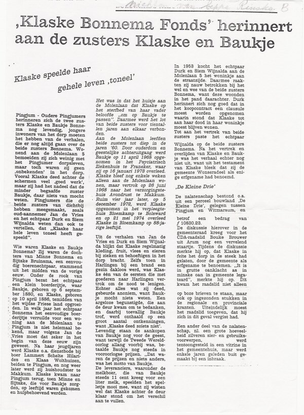 Over de dochters van Sijtske Bruinsma en Minne Bonnema stond eind 20e eeuw