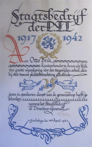 1917-1953 kantoorhouder van de PTT postkantoor in Arum