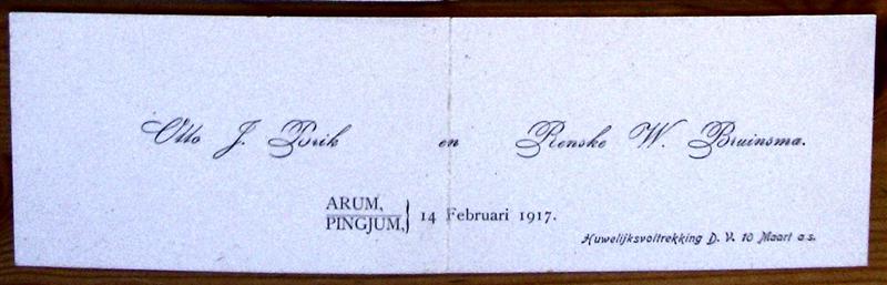 1917 Het ondertrouw kaartje van Otto Brik en Rinske Bruinsma