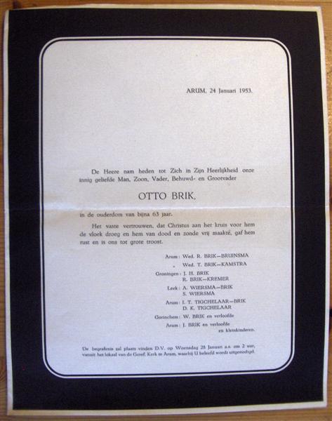 1953 de rouwkaart van Otto Brik - in de standaard uitvoering van die tijd