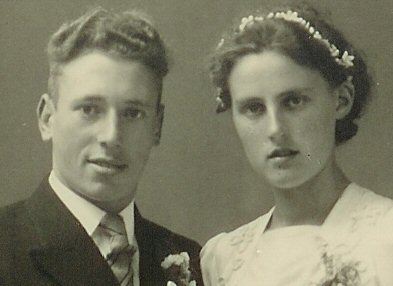 Tine Brik en Douwe Tigchelaar, trouwfoto's 31.7.1945