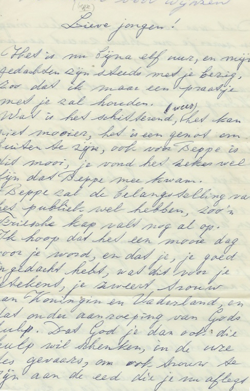 aan haar zoon Wijnzen die als officier beëdigd zou worden.