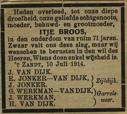 Itje Broos, 't Zandt 25.1.1843 - Zijldijk 10.07.1914 Zijldijk