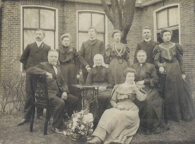 Familiefoto van het gezin van Jan Harrit Broos en Kunje Boomgaardt (pl. 1895).