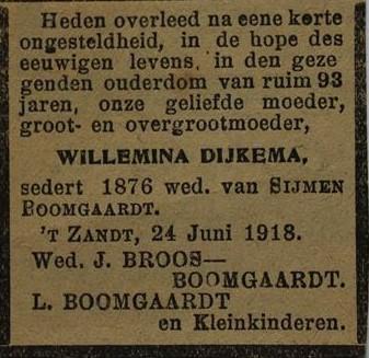 WILLEMINA JANS Broos, 't Zandt 30.12.1879 - Groningen 12.5.1962