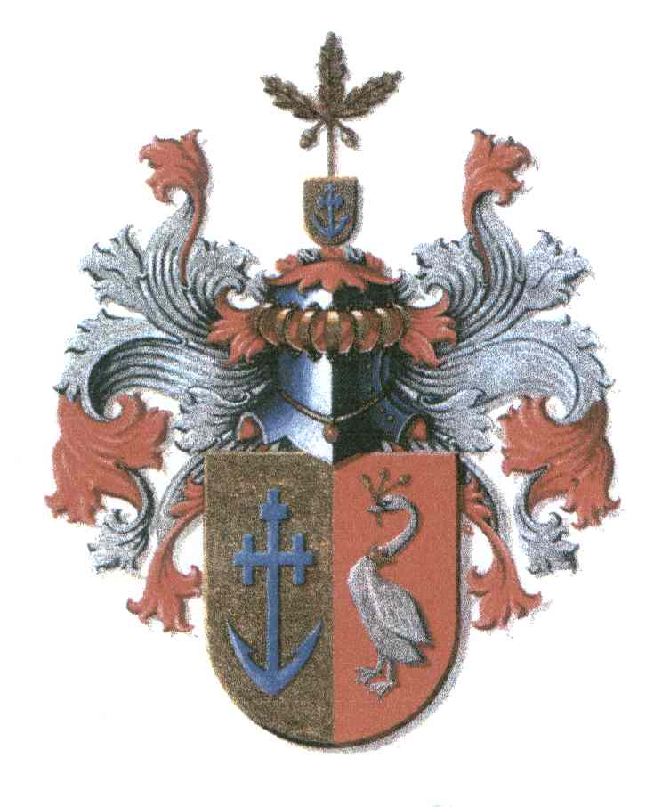 van een herkruist kruis;II in rood een staande zwaan met een kroontje om de hals