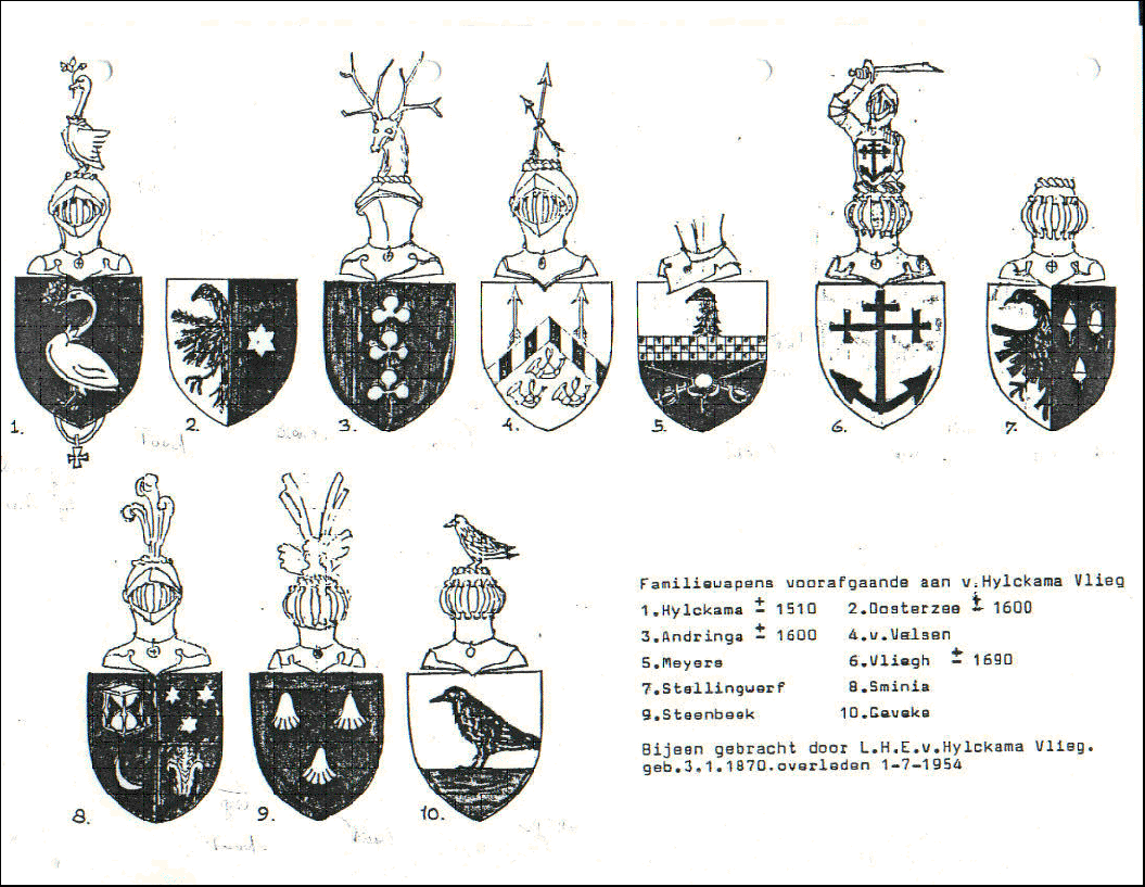 Hieronder Familiewapens voorafgaande aan die van Hylckama Vlieg: