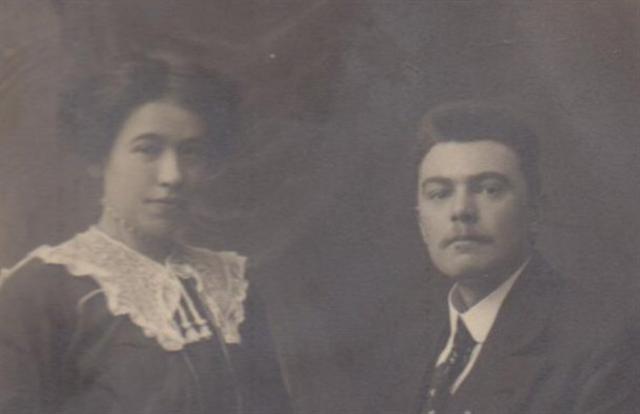 27.2.1918 trouwfoto Douwe Vellenga (1898-1941) en Sjoukje de Vries (1895-1986)