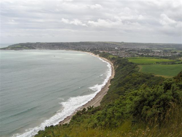 vanaf de klif zicht naar het zuiden op de baai voor Swanage