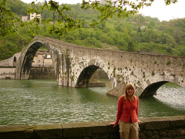 De duivelsbrug bij Borgo a Mozzamo, gebouwd voor de prijs van de eerste ziel: 'n hondje...