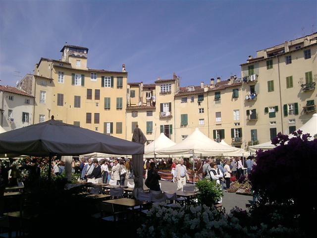 Bloemenmarkt op het ovalen Romeinse amfitheater.