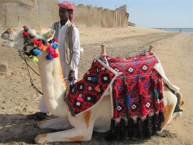 op het strand 20 km onder Hurgada